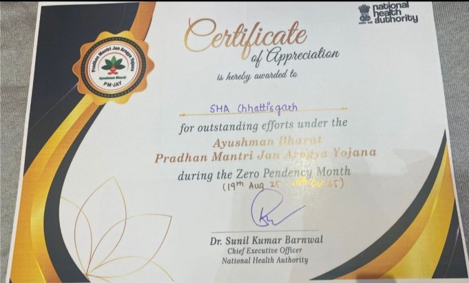 यह सम्मान राज्य के अथक प्रयासों और स्वास्थ्य क्षेत्र में अनुकरणीय कार्यशैली का प्रमाण है। सम्मान देने के मुख्य कारण पहचान किए गए सभी मुद्दों पर गहन फील्ड ऑडिट का सफलतापूर्वक आयोजन किया गया। आयुष्मान योजना के दावा प्रक्रिया में टर्नअराउंड टाइम को उल्लेखनीय रूप से घटाया गया, जिससे लाभार्थियों को त्वरित सेवाएं मिलीं। सभी संबंधित हितधारकों की विस्तृत संवेदनशीलता और जागरूकता कार्यक्रमों का संचालन कर उन्हें जागरूक बनाया गया। एनएचए की पैनल्ड स्वास्थ्य सेवा प्रदाताओं के साथ प्रभावी संचार तंत्र स्थापित कर समन्वय को बेहतर किया गया। छत्तीसगढ़ सरकार का यह प्रयास राज्य के नागरिकों को गुणवत्तापूर्ण और सुलभ स्वास्थ्य सेवाएं उपलब्ध कराने में मील का पत्थर साबित हुआ है। मुख्यमंत्री श्री साय ने छत्तीसगढ़ की इस उपलब्धि के लिए स्वास्थ्य विभाग के सभी अधिकारियों एवं स्वास्थ्य कार्यकर्ताओं को बधाई दी है।